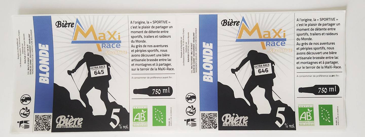 A l’occasion d’une Maxi Race organisée par notre partenaire, nous avons réalisé une série d’étiquettes personnalisées avec le numéro